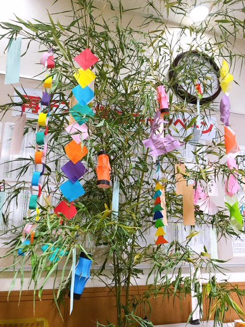 塾のロビーにも笹を置いてみました✨