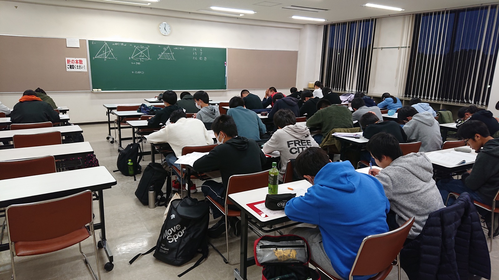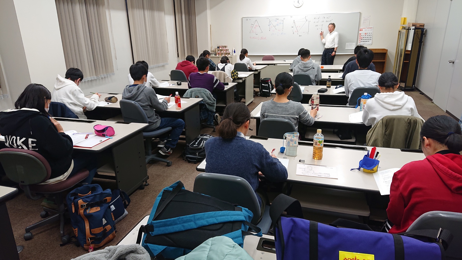 ということで,この合宿の数学では「相似」と「三平方の定理」の2単元に絞って,徹底的に演習しました。