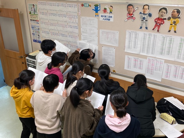 滝川第二高校を受験した受験生たちがドキドキしながら採点しています。