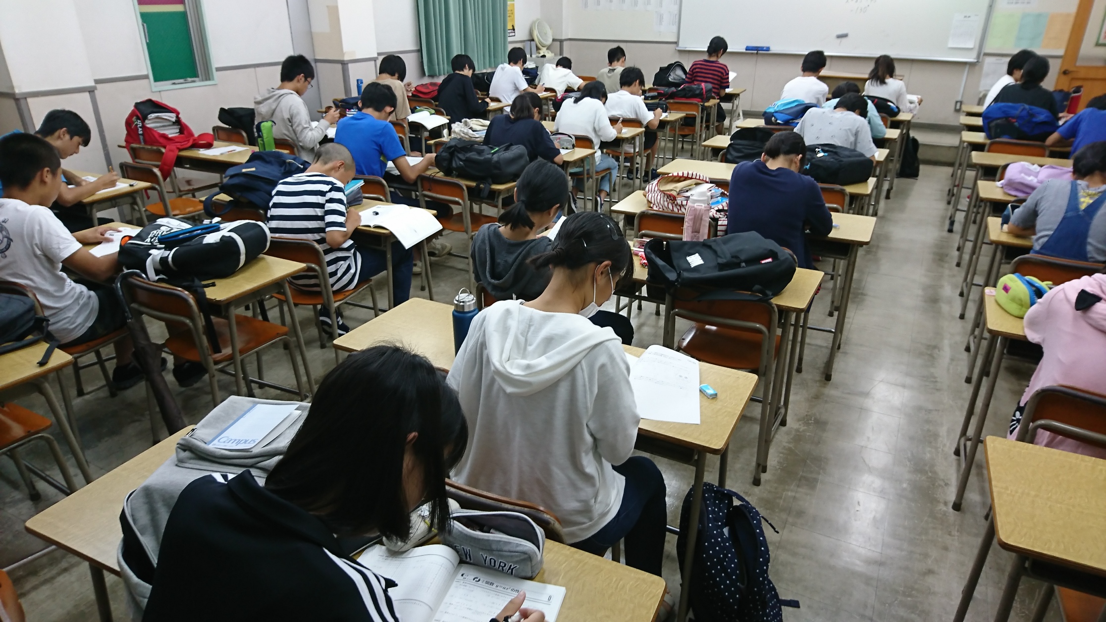 中学生や私立中学受験を目指す小学生が居残り勉強をしています。